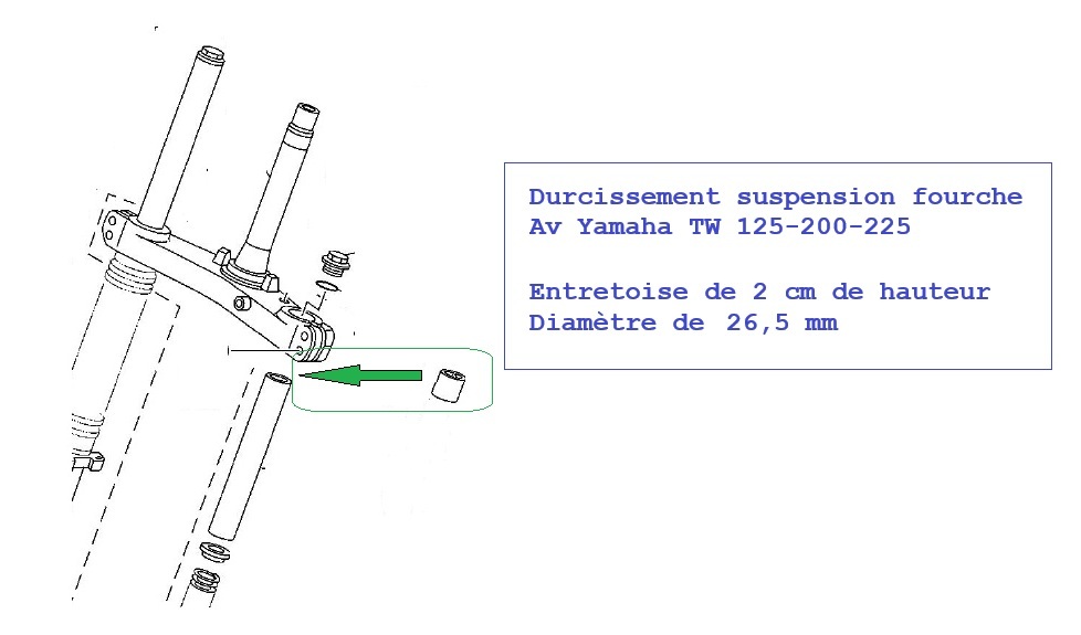 Pour durcir la fourche Av, il y a moyen de placer une entretoise de 2 cm lors du remontage