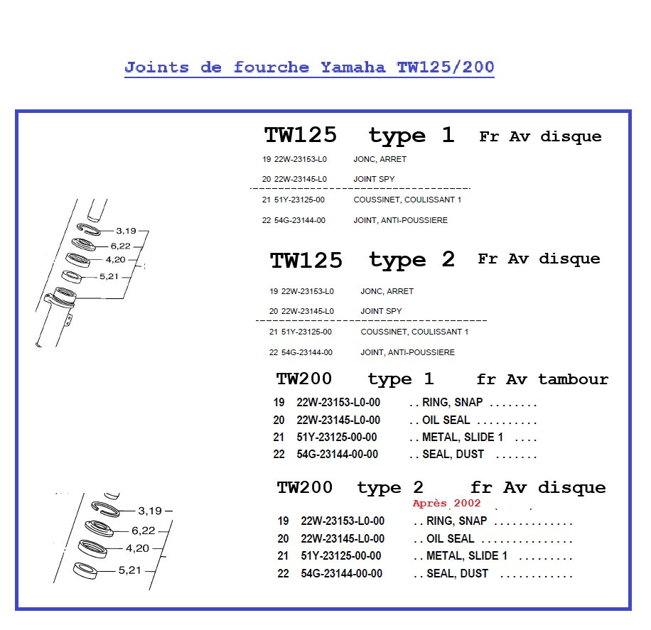 Selon moi les joints sont identiques pour toutes les TW,..